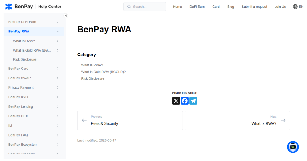 Before you start: KYC is required for physical redemption. Gold prices fluctuate — tokenized gold does not guarantee returns. Smart contract risk exists despite audits and Move architecture. The BenPay ecosystem continues to expand, with additional features planned.