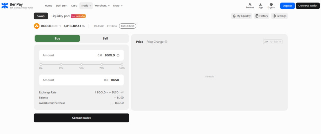 Lending, DEX liquidity, and privacy features are planned additions — no confirmed timeline has been announced. Currently, BGOLD supports instant swap (BGOLD ↔ BUSD/USDT) and gas payment on BenFen. Check the BenPay RWA help center for the latest feature availability.