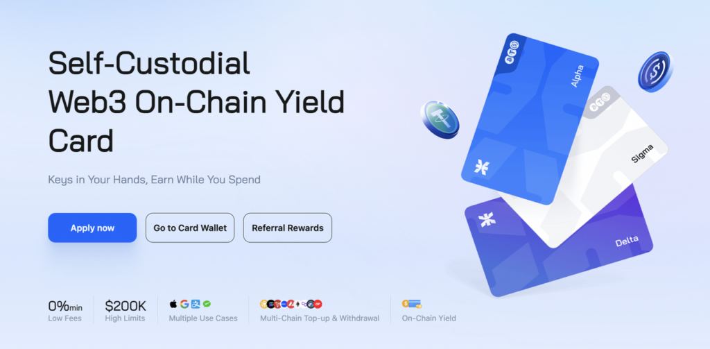 - Crypto Cashback Card: Most rely on traditional payment settlement systems and do not directly interact with on-chain protocols. As a result, they generally do not support cross-chain asset management, offering limited flexibility in on-chain fund usage.