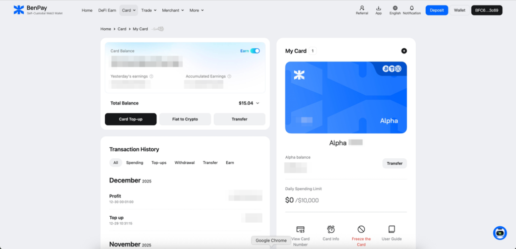 To illustrate how an on-chain yield card works in practice, consider the BenPay On-Chain Yield Card (mentioned purely as an example).