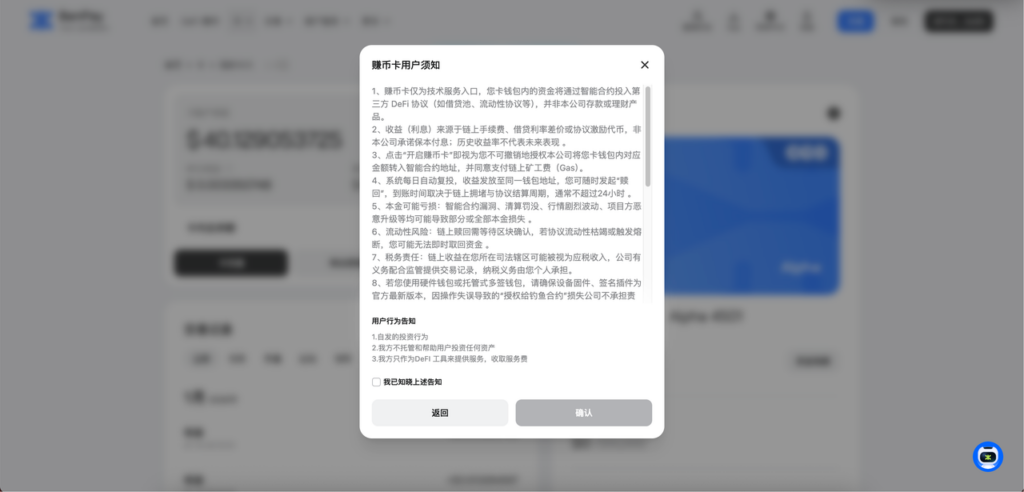 这是新手判断一张赚币卡是否“可信”的第二个关键点。赚币卡的收益并非“平台发放”,而是来自链上 DeFi 协议。